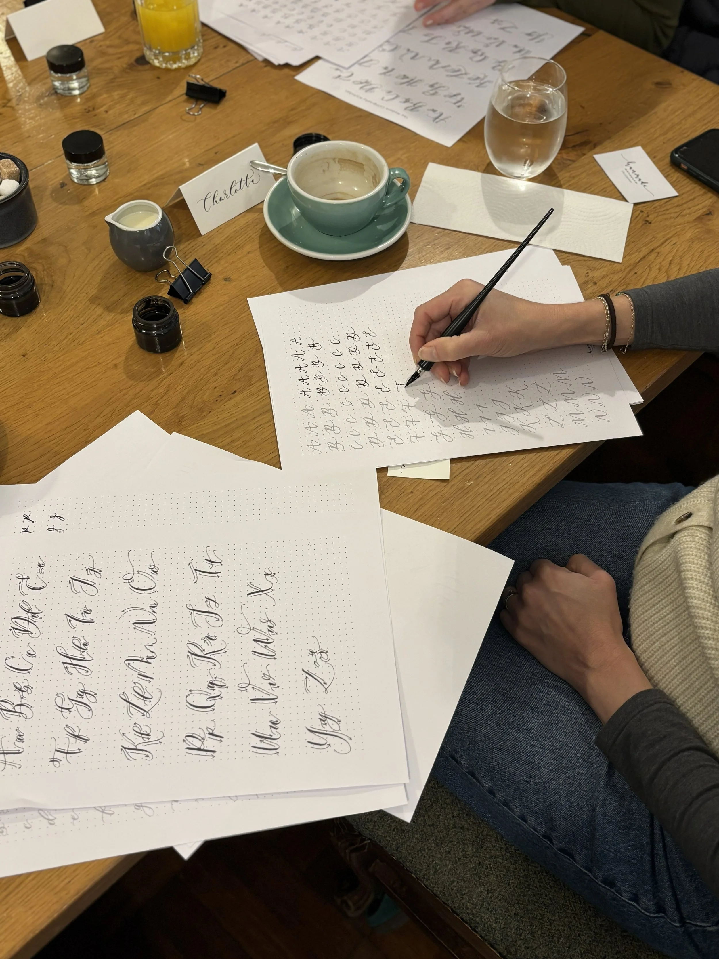 You will leave with your personalised calligraphy kit which includes: nib, straight pen holder, black ink, ink pot, the Hanmade Calligraphy workbook and layout paper.