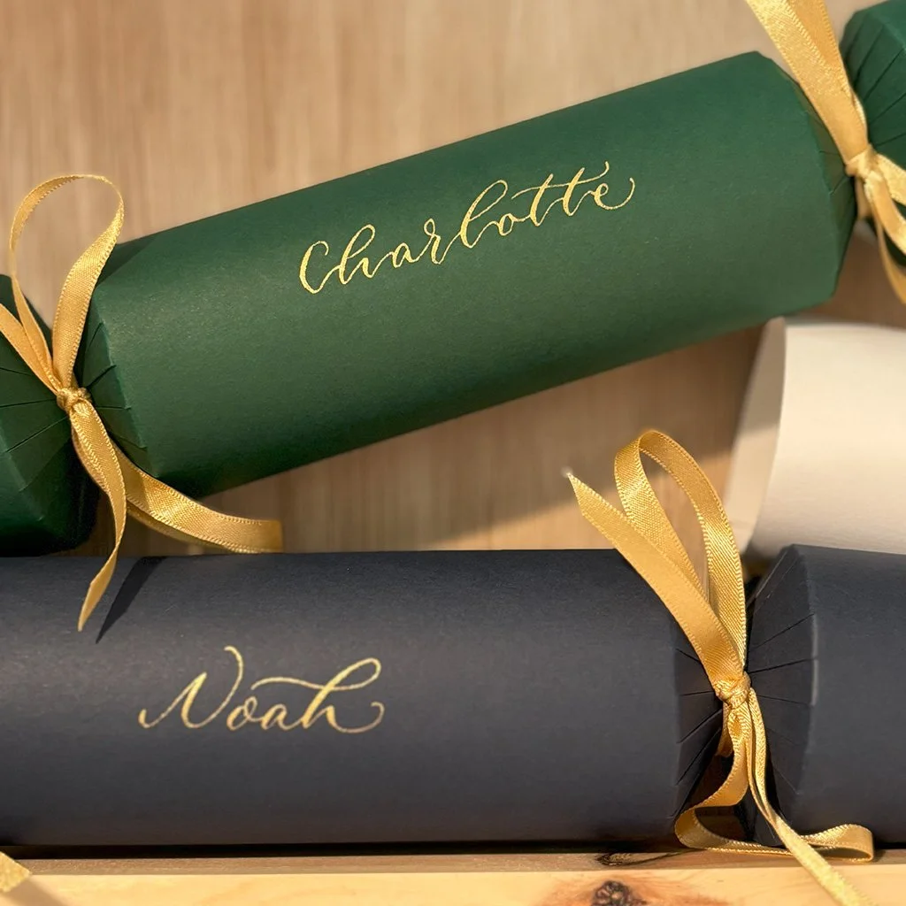 These DIY personalised calligraphy crackers are a beautiful way to add a personal touch to your table. A handwritten calligraphy cracker, written in my style of modern calligraphy using a traditional nib and ink, that can be completely personalised with any name, date or phrase.